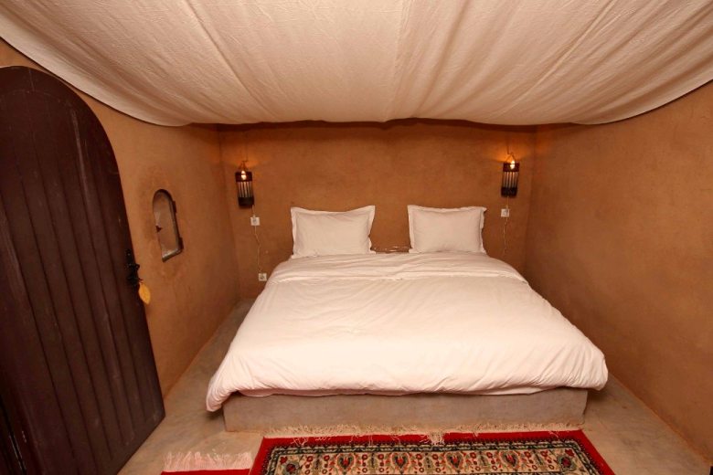 In addition Hotel Bab Rimal offers a different type of accommodation in south Morocco; the deluxe bivouac. This is an adobe building in the shape of a nomad tent in the desert, equipped with private bathroom & air conditioning for your comfort.