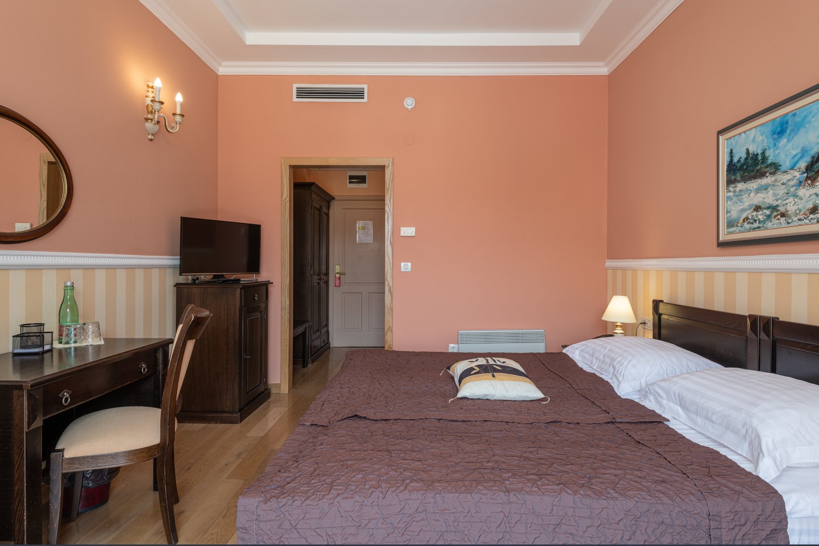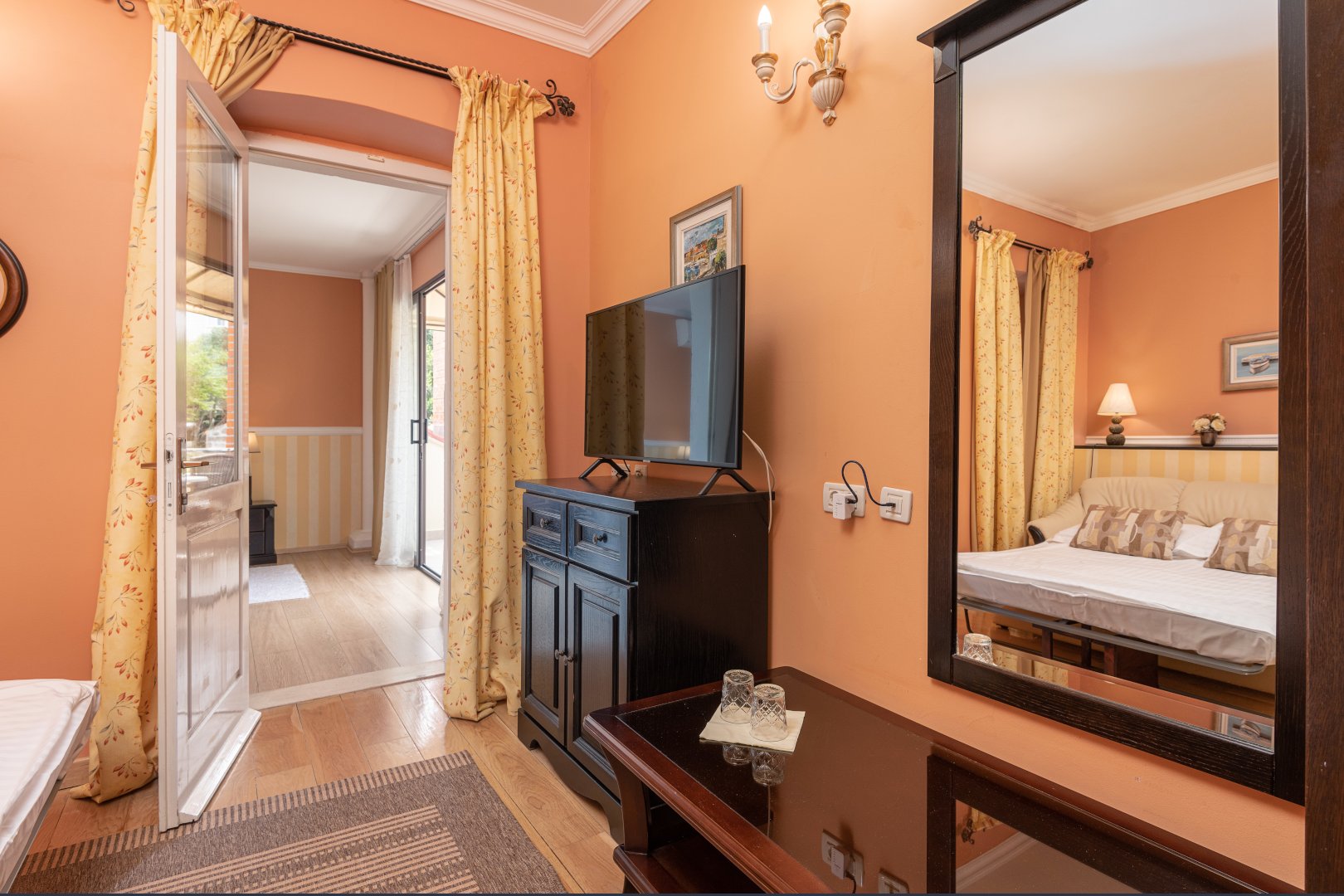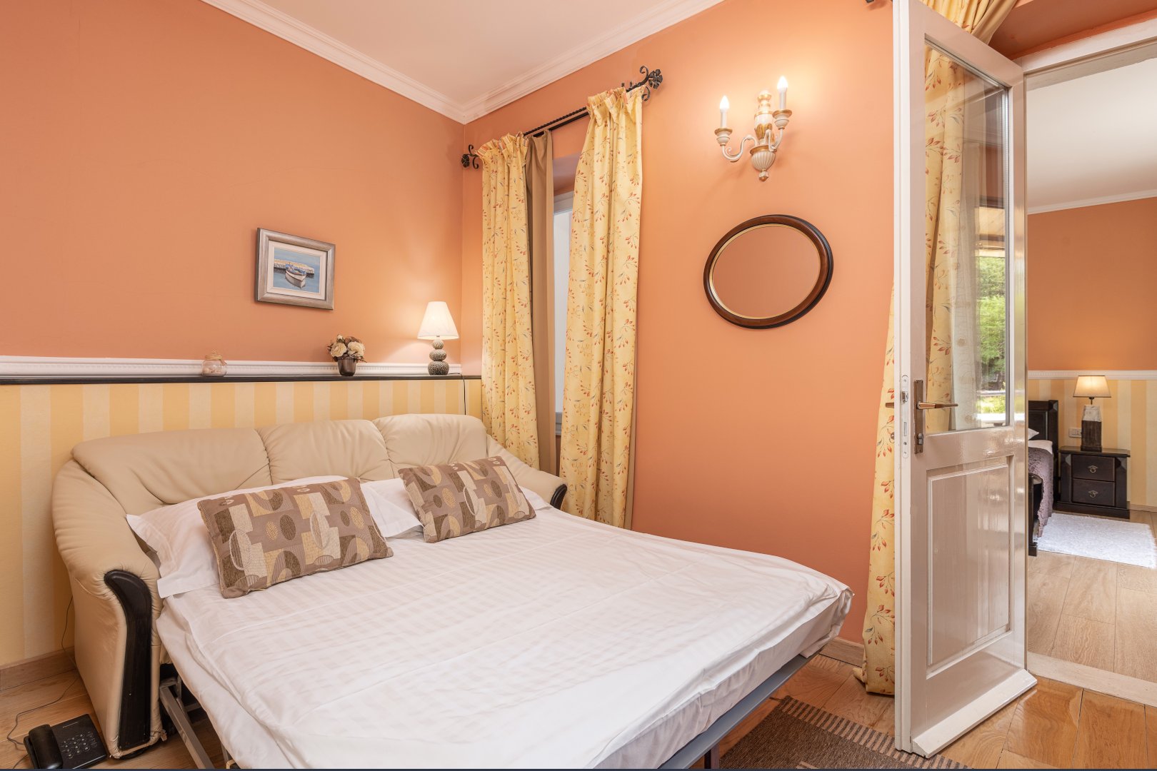 Villa Pattiera has a total of 12 rooms, all equipped and decorated in a simple yet stylish way. All rooms are ensuite with hairdryer, telephone, fridge, satellite TV and air conditioning. Standard rooms are a little smaller in size and have park view; Superior rooms face the promenade and some have a balcony or shared terrace (on request); Deluxe rooms can sleep up to 3 adults or two adults and two children.  All deluxe rooms are promenade facing with balcony or shared terrace.