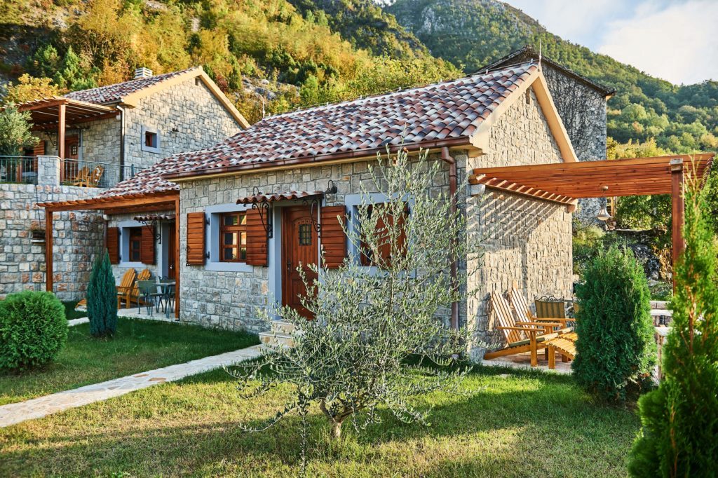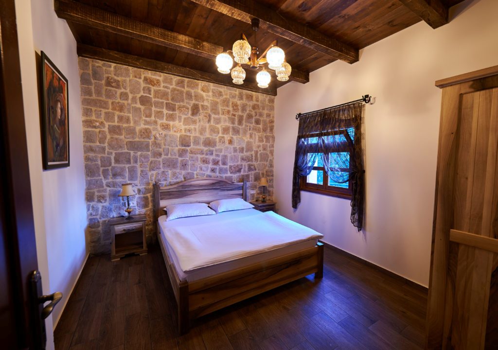 • Villa Vranac (45 sq m) -  maximum 4 persons. Villa Vranac (45 sq m) has 1 bedroom with king size bed, living room with sofa bed, kitchen with dining table and a private bathroom. This Villa features a perfect glimpse of old and modern at the same time. The terrace of the villa gives you privacy with a view on the old fortress of Besac and to the pool.