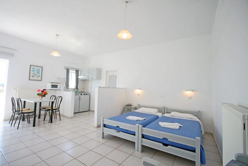 Facilities include a swimming pool (90sqm) with children’s end, pool bar, a beautiful stone tiled barbecue area, breakfast room (breakfast is not included), modern reception area and a small pleasantly decorated lounge with TV. Most of the apartments offer sea views and all of the apartments are supplied with air conditioning (extra local charge), microwave, radio, telephone, TV, electric kettle and toaster. Provision has been made in two of the ground floor studios, for clients with wheelchairs.