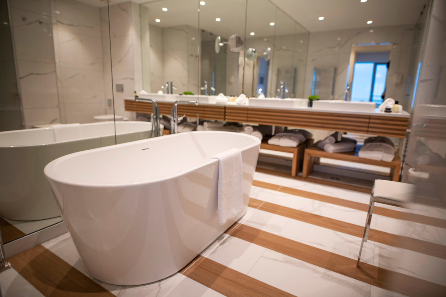 Wellness and Spa: the highlight is the indoor freshwater heated pool with spectacular sea views through its high glass wall. You can also look forward to a Jacuzzi whirlpool, a peaceful relaxation zone lined with contemporary rattan sun loungers, plus an immaculate mosaic-style steam room and Finnish sauna. Choose from a menu of holistic spa treatments that marry the best of Eastern and Western philosophy, including mind-calming massages, first-class facials, body rituals, scrubs and blissful baths.