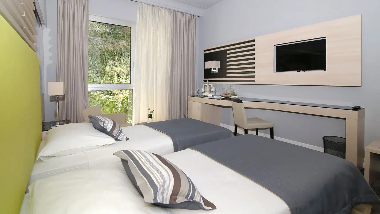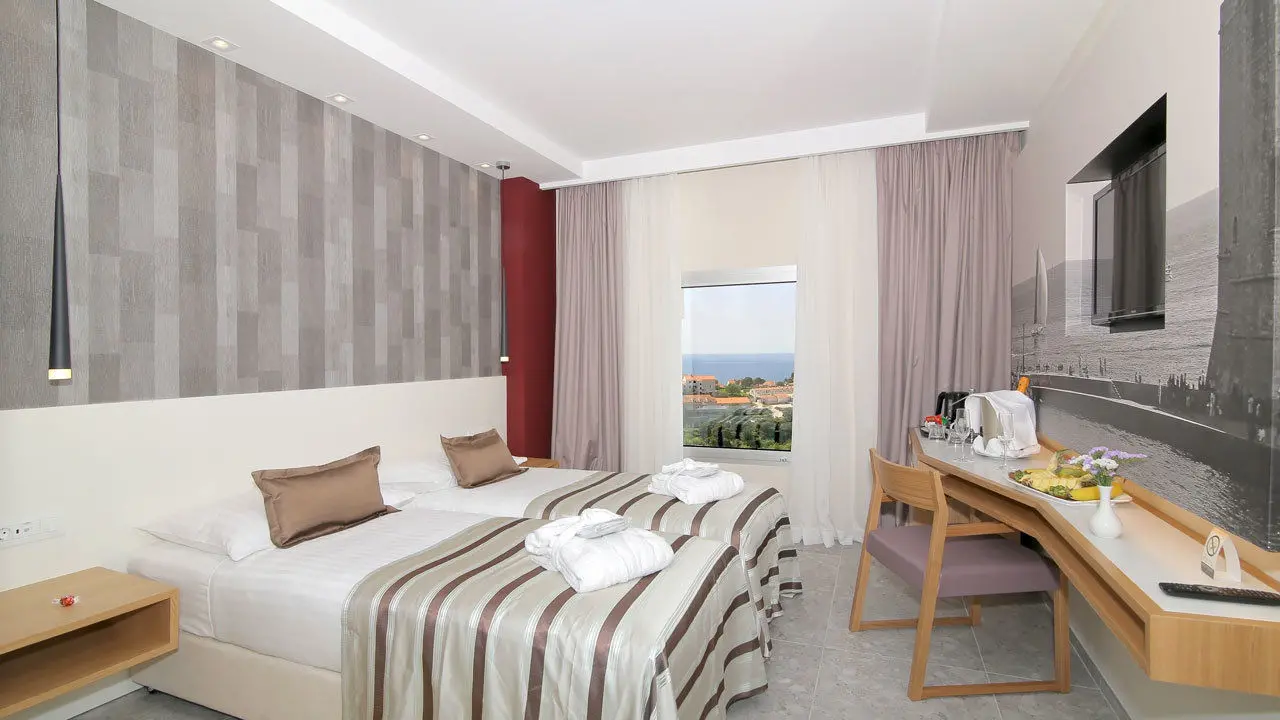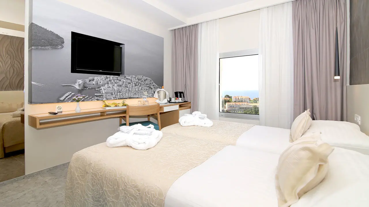 Classic rooms are either double or twin rooms; Superior rooms (also double or twins) are slightly larger and are in new wing ; Executive Rooms can be found on the hotel’s top floor - they feature an idyllic sea view, while the ones situated in the hotel’s newly built wing offer pool-facing balconies; Family Rooms are exceptionally spacious and feature two bedrooms – one with a comfortable double bed and the other with two single beds, a generous bathroom with a bathtub or a shower, and an additional toilet.
