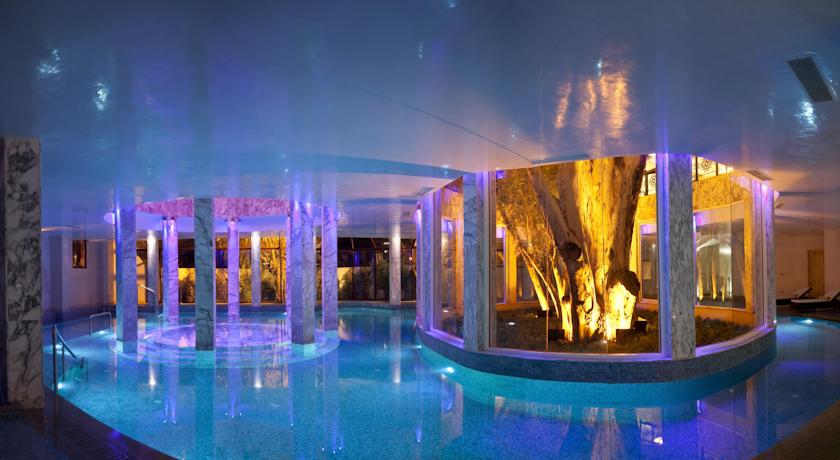 Large swimming pool with sun terrace, small gym, sauna, poolside bar, excellent restaurant, tennis courts, large and lush gardens. Live evening entertainment and casino in separate building in hotel grounds;  a 3000 m² spa, 8 restaurants and 5 bars. A tennis court and a fitness centre are also available.