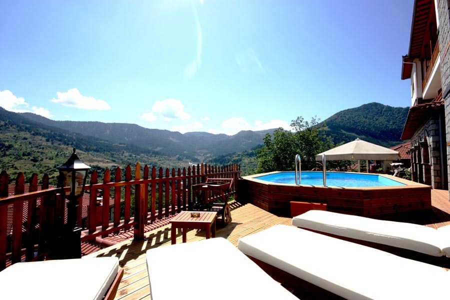 Suites have Jacuzzi overlooking the Pindos Mountains, hydromassage cabin, steam bath and sauna, fireplace.