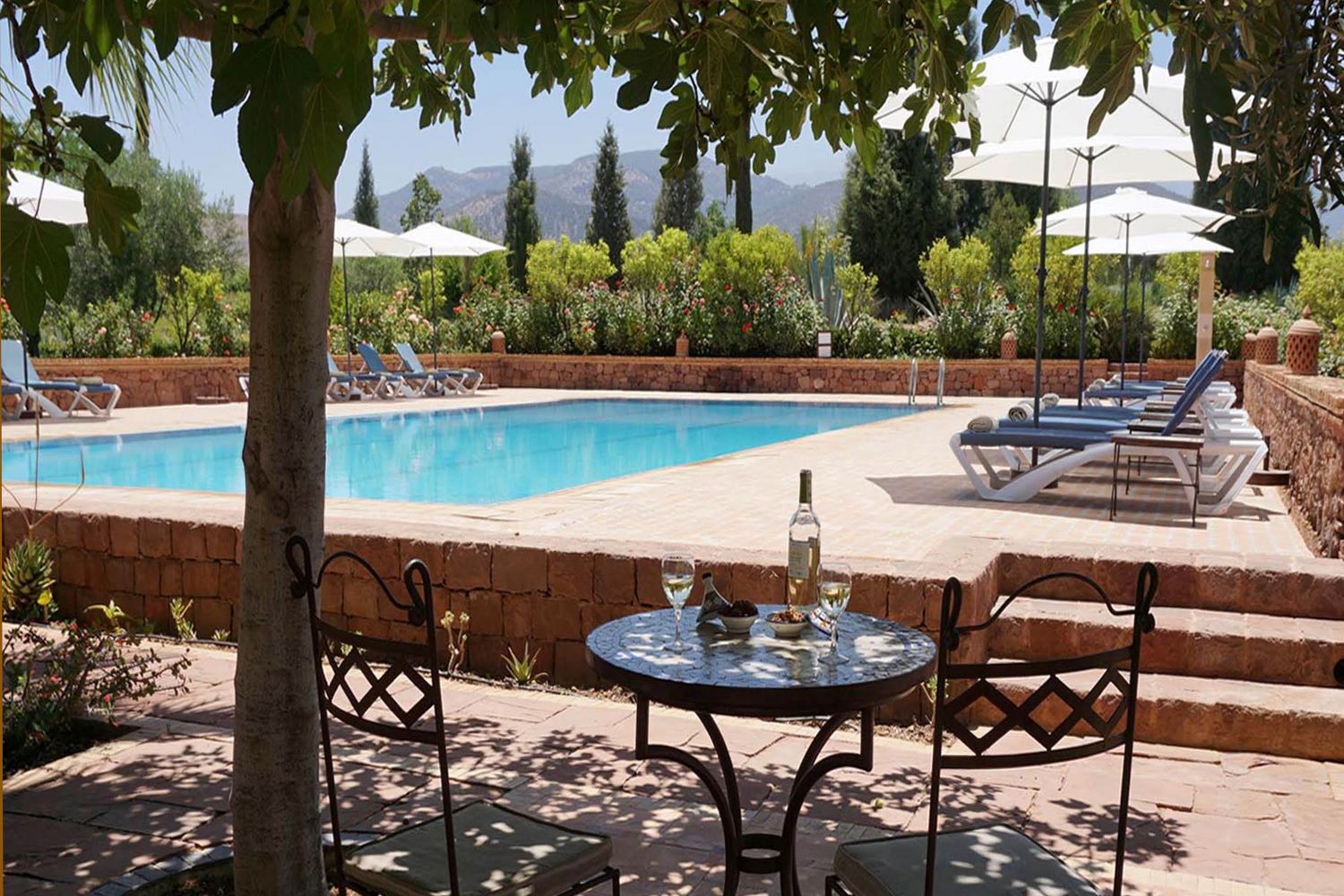 Kasbah Angour is a boutique hotel & restaurant in a Berber castle in the Atlas Mountains near Marrakech. The Kasbah is perched on a hilltop and has superb panoramic views. There are 27 rooms & suites, spacious public areas, a wonderful swimming pool and beautiful gardens. Guests at Kasbah Angour can unwind in the hotel’s gardens, explore the Atlas Mountains with a guide or visit Marrakech, just 30 mins drive away.