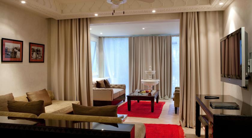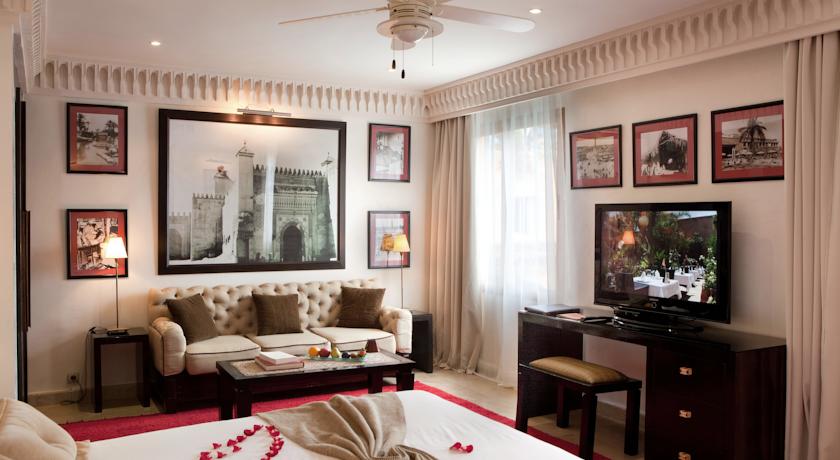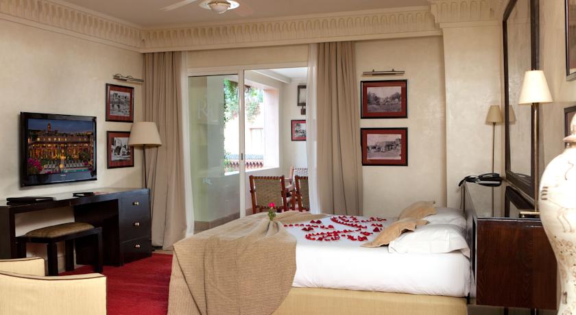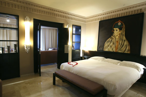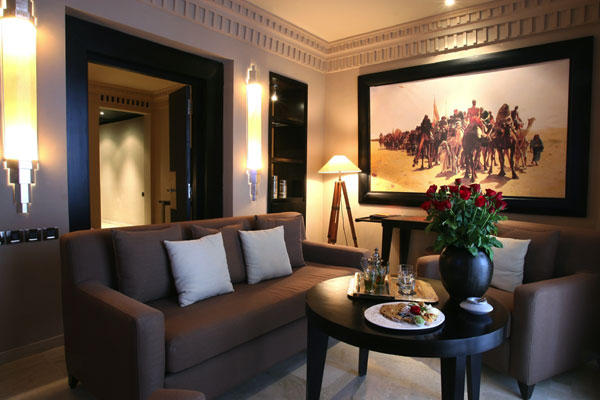 • Royal Suite has a balcony overlooking the patio and a large landscaped terrace with a view of the medina, separate lounge with fireplace, Jacuzzi, and Nespresso machine.