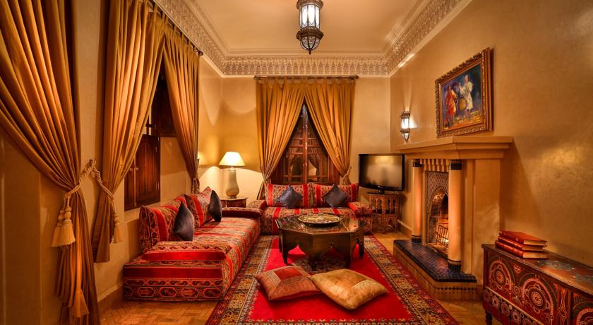 The staff at the riad are highly trained and motivated and ensure a personal service. You can enjoy excellent dining, lounges with magnificent fireplaces and traditional Moroccan furniture. Dinner can be arranged at the riad - highly recommended to try delicious home cooked Moroccan food. Meals can be served in one of the lounges or on the terrace with beautiful views towards the Atlas Mountains and the old Medina. Wifi is provided throughout the property. Free private parking is possible on site.