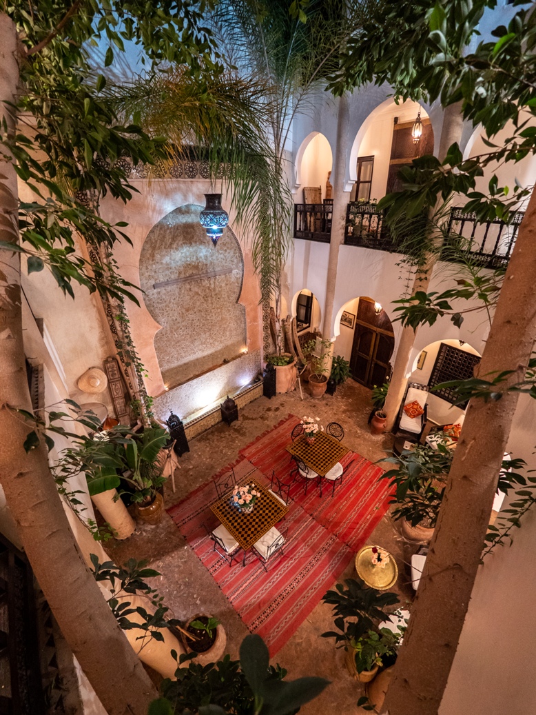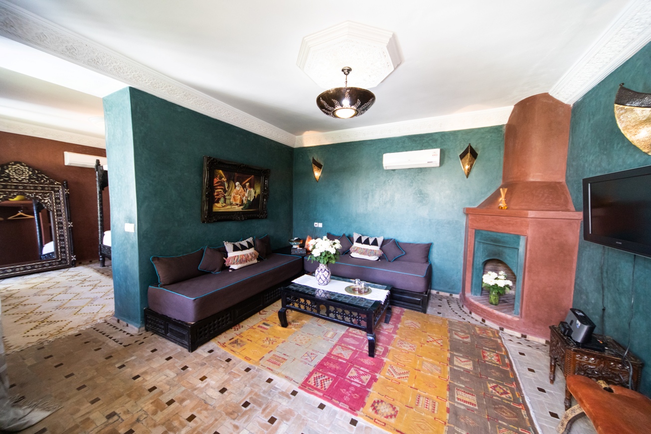 Lounges & public areas: the riad features many alcoves and seating areas where you can relax and enjoy the fantastic atmosphere. The small library has books and board games, Satellite TV (in main salon), wifi throughout, two terraces with views over the medina and the Atlas Mountains and a large patio with fountain.