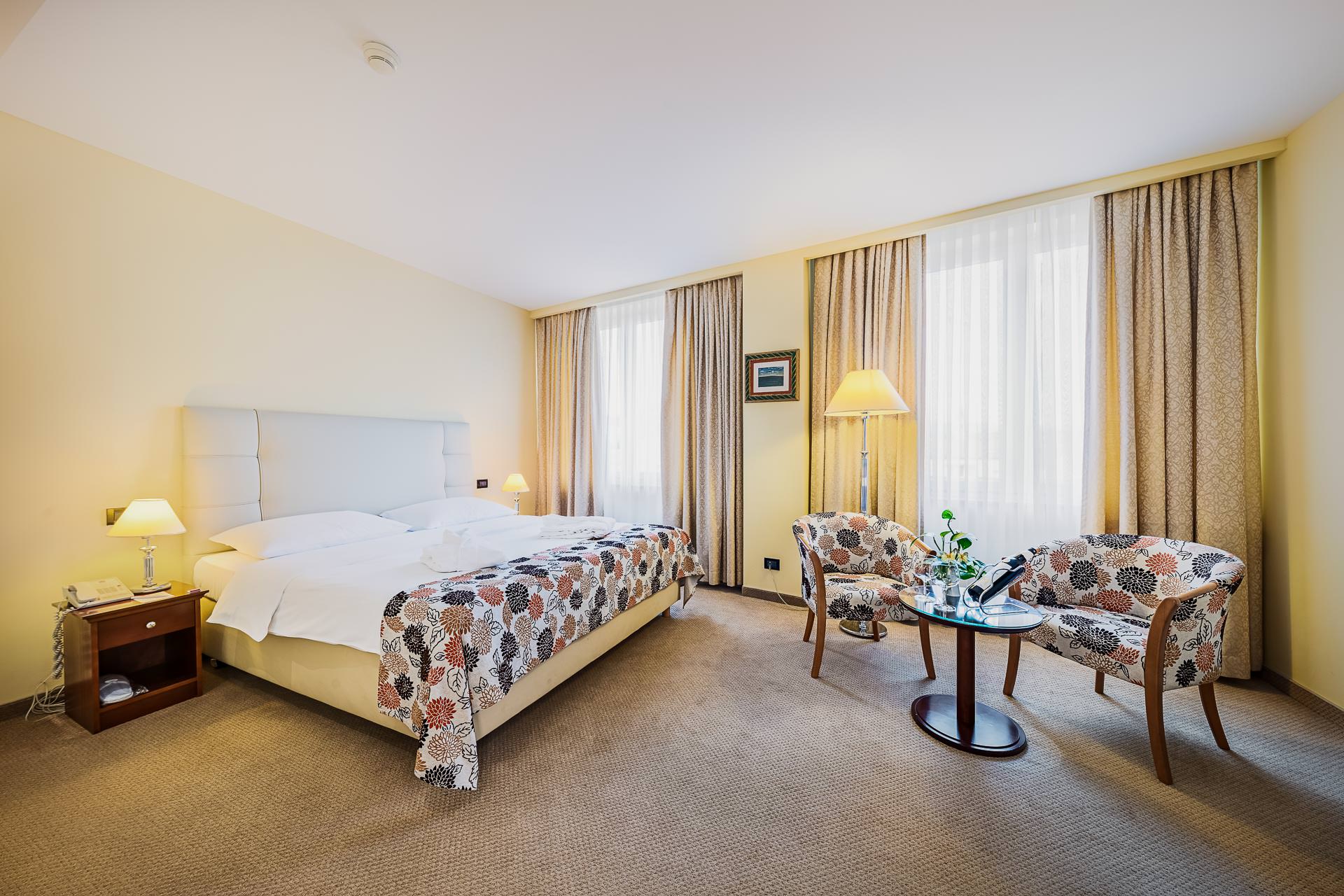 Standard & Deluxe rooms are in both the old and the new part of the hotel. Some rooms have a view over central Ban J. Jelačić square and pedestrian zone whilst other rooms are more serene and face the hotel yard. All 7 Suites are in the new part of the hotel with a view over Bogovićeva Street all the way to Cvjetni trg (The Flower square). The Presidential Suite 'Dubrovnik Crown Suite' has a terrace overlooking the square.