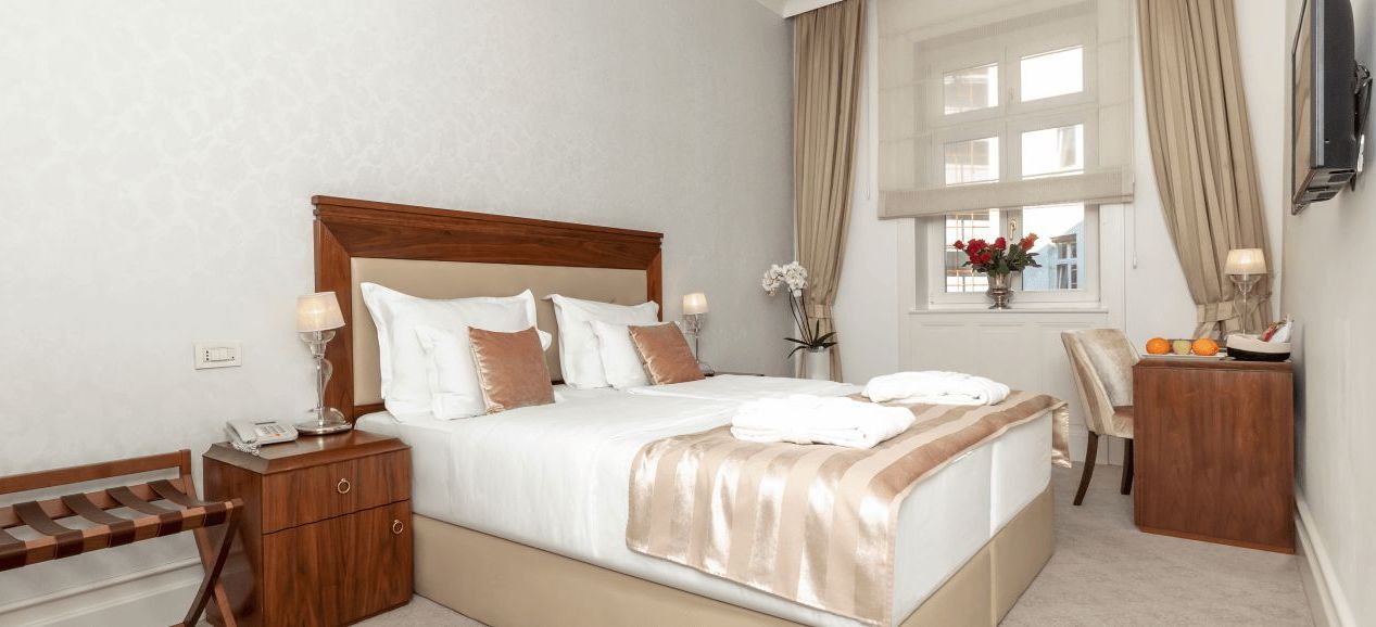 Le Premier Hotel is located in Zagreb’s city centre, housed in a 20thC palace which has been transformed into a luxurious boutique hotel.