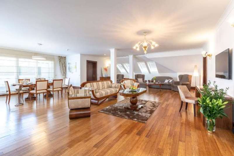 Presidential Suite is a huge space of 220sqm. It has two separate bedrooms, kitchenette and terrace, making it the crown jewel of Le Premier boutique hotel. As the suite stretches across much of the top floor it has a wonderful view of cathedral spires & Zagreb rooftops.