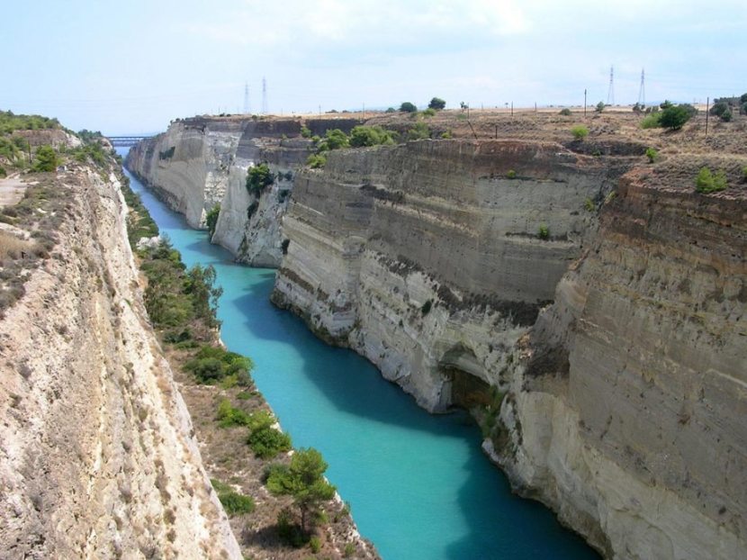 Leave Athens and drive South West until you reach the Corinth Canal which connects the Aegean with the Ionian. There will be a short stop here.