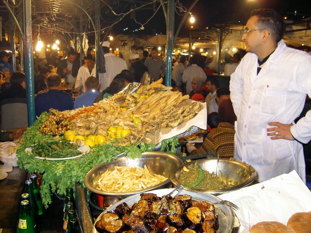 - Picnic lunch - fresh Moroccan salad, cheese, slicing sausage, tinned tuna fish and sardines, bread, fruit, mint tea.