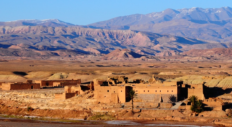 From your hotel or riad in Marrakech your journey will begin across the Glaoua Plains and up via the winding road over the High Atlas Mountains through the Tichka Pass at 2260m. From this high point you will see the dramatic changes in the countryside - from high mountain ranges to semi-desert and oases. Along the way you will stop at the magnificently exotic kasbah of Aït Ben Haddou, declared a World Heritage Site; here Hollywood has shot many of its films, including “Lawrence of Arabia” and "Gladiator". Continuing further south you will pass through Ouarzazate and then down the beautiful Drâa Valley to the small oasis town of Zagora.