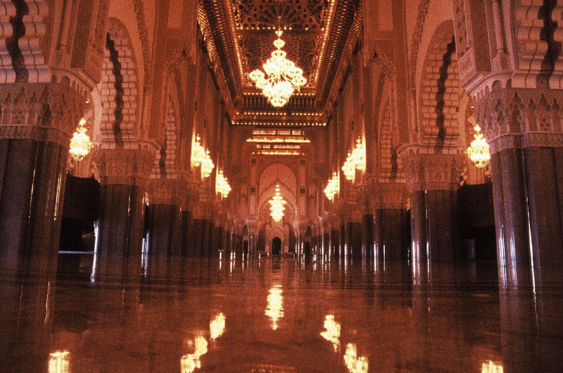 A brief visit to the magnificent Hassan II Mosque in the morning and then take delivery of your hire car at the hotel. Visit the nearby capital of Morocco, Rabat, and then onwards across the plain to the holy town of Moulay Idriss, high up in the Rif Mountains.