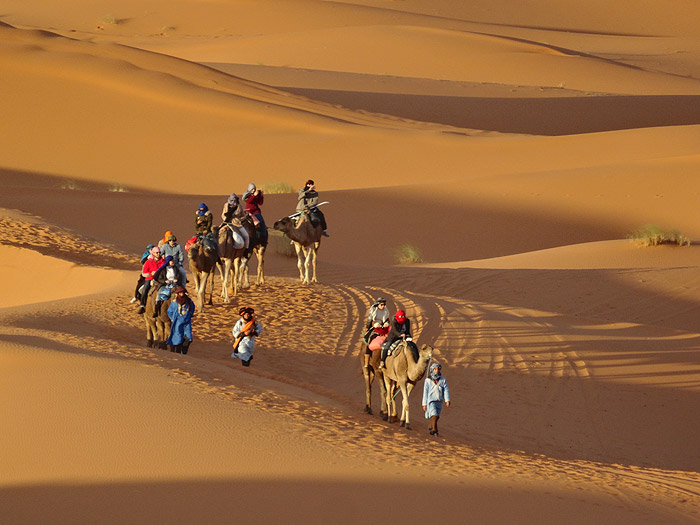 Day 5 - after a relaxing morning at the edge of the desert depart with our local driver/guide on a fabulous excursion into the Sahara near Merzouga, to stay overnight at the high dunes of Erg Chebbi; arriving by camel.