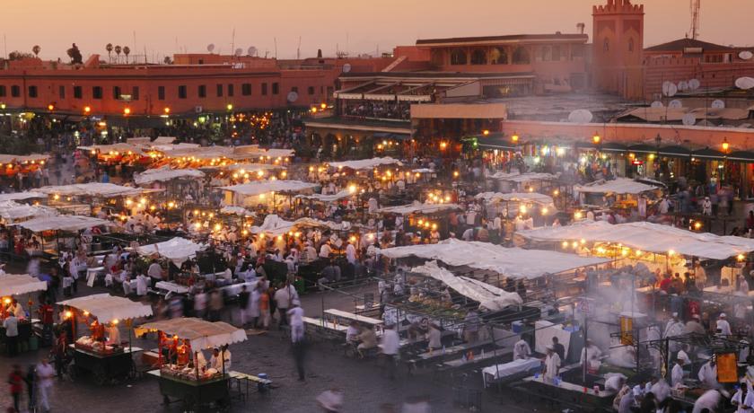 Any tour of the city will include the medina & souks where you can find foodstuffs, fabrics and handicrafts, your tour also includes the Ben-Youssef Medersa, a Koranic school which, in the past, took in hundreds of students in a setting favourable for uplifting the soul; towards the end you'll also visit the iconic Djemma el Fna, Marrakech's main square, in the shadow of the Koutoubia Mosque. You will no doubt wish to return under your own steam to enter into the labyrinthine souk for some serious bargaining (make sure you leave some room in your suitcase for your purchases!). In the evening the Djemma el Fna changes quite dramatically and comes alive with a plethora of al fresco dining stalls such as those selling spicy sausages, fresh fish and chips, traditional Harira soup and even snails, all washed down with plenty of sweet mint tea of course. All the time you will be surrounded by acrobats, snake charmers, fortune tellers and entertainers of all kinds. If you prefer a top-notch restaurant or a lively nightclub, Marrakech can offer that as well.