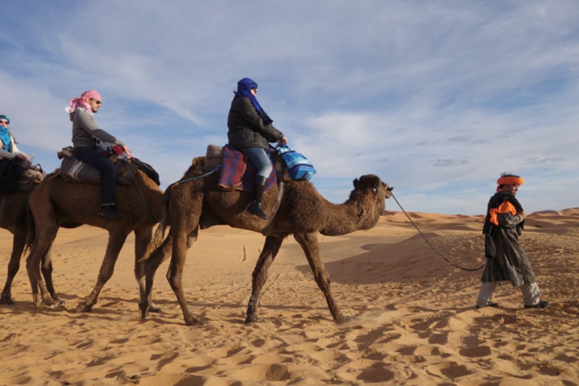 We recommend you bring the following: Day pack (for camera, water bottles, hat, etc.); windcheater (seasonal), broad-brimmed hat (or you may purchase a 'Cheche' before you set out from Zagora); personal toiletries and towel; hygienic wipes (and/or gel); small First Aid kit; head torch with batteries; filled water bottle(s); sunscreen, sunglasses; nibbles and/or dried fruit. Drinking chocolate if preferred. Extra toilet rolls could come in handy! For those who wear contact lenses, perhaps it would be a good idea to bring along a spare pair of glasses.