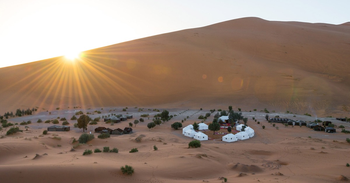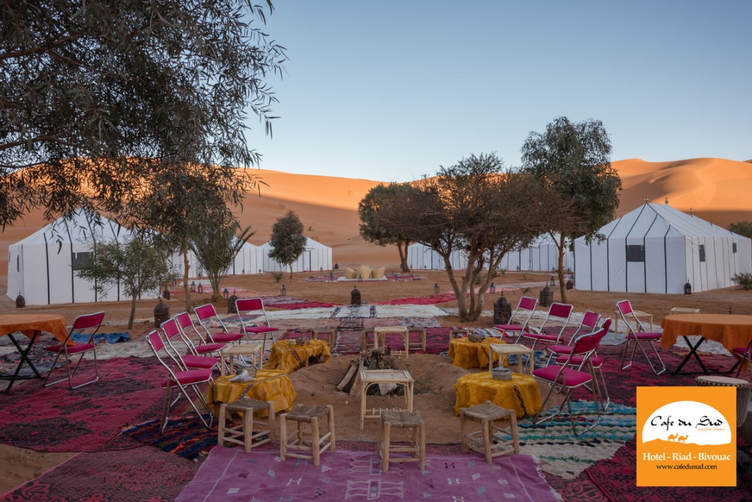 In Ouarzazate and Tineghir there are overnight stays in small kasbah-style hotels with dinner and breakfast included; the second night is at a location deep within the Sahara at Erg Chebbi. The sunsets and sunrises in the rarefied air of the desert can simply take your breath away, this second night may be spent in our carpetted, deluxe tents or out in the open under an awesome canopy of the starlit heavens.