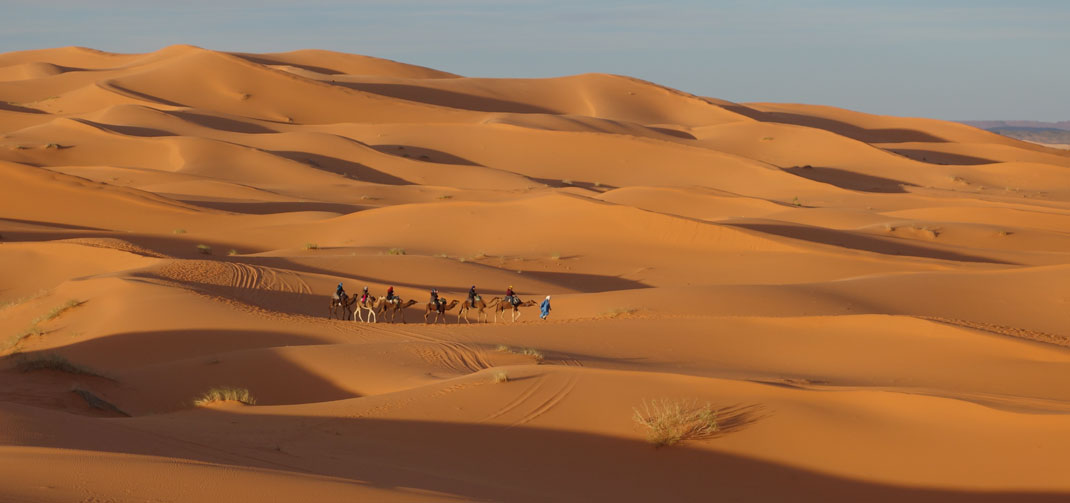 All travel to and from the desert is by air-conditioned, 4WD vehicle, most meals and sightseeing are included and there is an extended duration camel meharee (ride) into the desert with an overnight stay in deluxe Bedouin tents in beautiful and peaceful settings. All our desert trips are based on including private transfers from Marrakech; please contact us to arrange accommodation - we are experts for small hotels and riads across Morocco.
