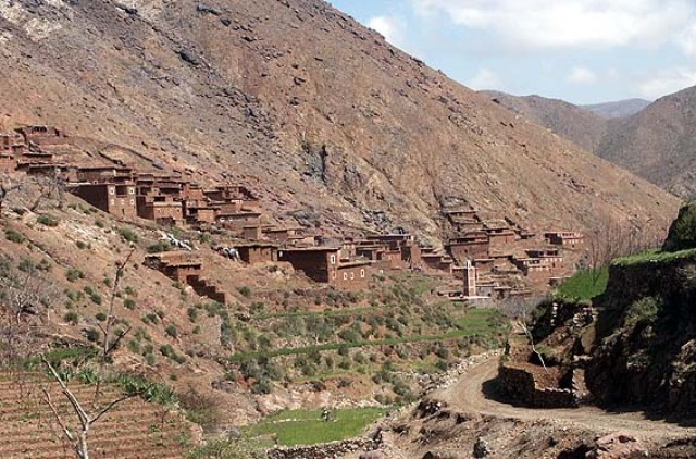 Departure from Marrakech early in the morning for a pleasing two hour drive over the Tizi n'Techt way up into the foothills of the High Atlas; arriving at the trailhead in the Berber village of Imlil (1740m). With streams and paths branching out all around it is time to set out with your guide for just under two hours hiking towards the east up to the Tizi n'Tamatert (2272m); then on through fields of wheat and orchards of walnut, apple and cherry trees until you reach the village of Tamatert (1810m).