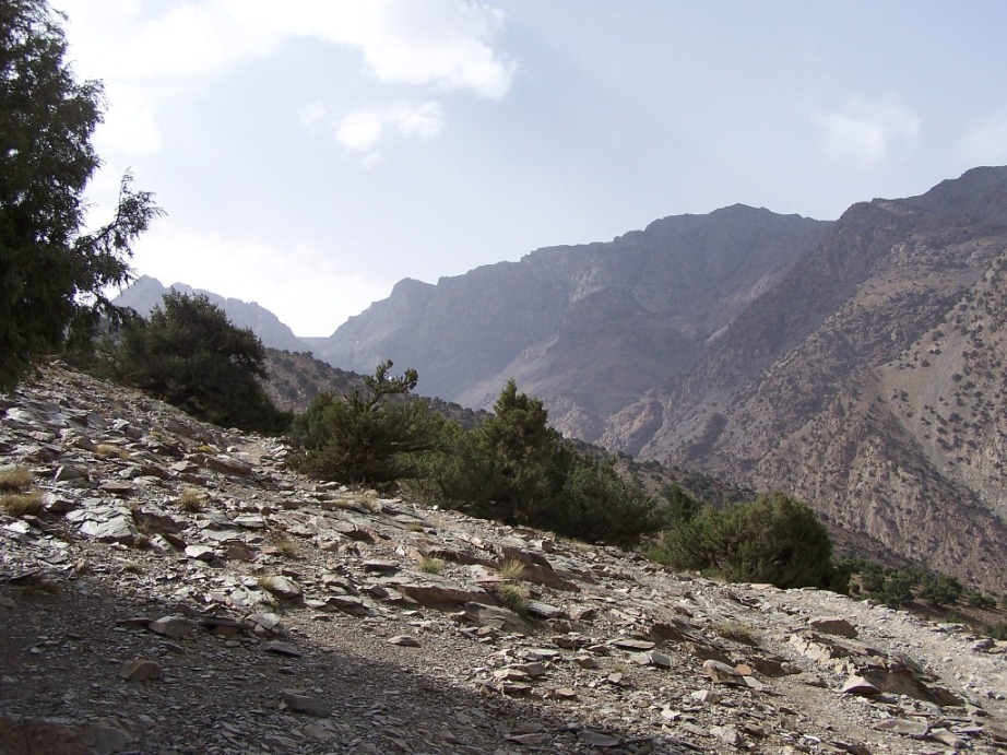 Once through the village your guide will take a path which leads up though pine and juniper woods; stopping at the Tizi [pass] to admire the Imlil and Imenane Valleys below. The latter has many Berber villages tucked precariously onto the slopes stretching around you and Jbel Oukaimeden (3268m) on the near horizon. From here, carry on along the upper valley slopes for another hour or so to the villages of Ouaneskra and Amghedoul (2130m) set amidst terraced plots of land carved from the hard slopes. Here your guide will prepare your picnic on the plateau used, in summer, as a favoured camping site. The afternoon will be spent hiking for around three hours up through the valley along mule trails until you reach the pretty Berber village of Tacheddirt (2291m), set amongst terraced plots clawed from the surrounding craggy slopes. This is also the oldest village in the Toubkal Massif where you'll overnight in a Gite d'Etape (Berber House with hot shower). Whilst dinner is being prepared, there's ample opportunity to visit the village and meet the welcoming Berber villagers.