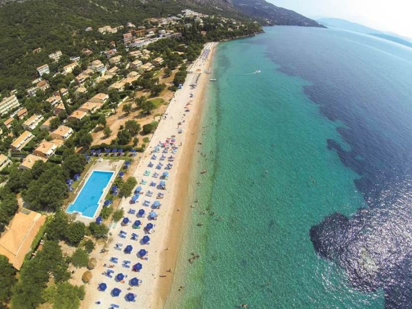 Set on the northern tip of Corfu near Roda, this family-friendly resort is surrounded by olive groves, vineyards, and striking mountain scenery. The famous Corfu Trail passes just behind the town, offering superb walking routes.