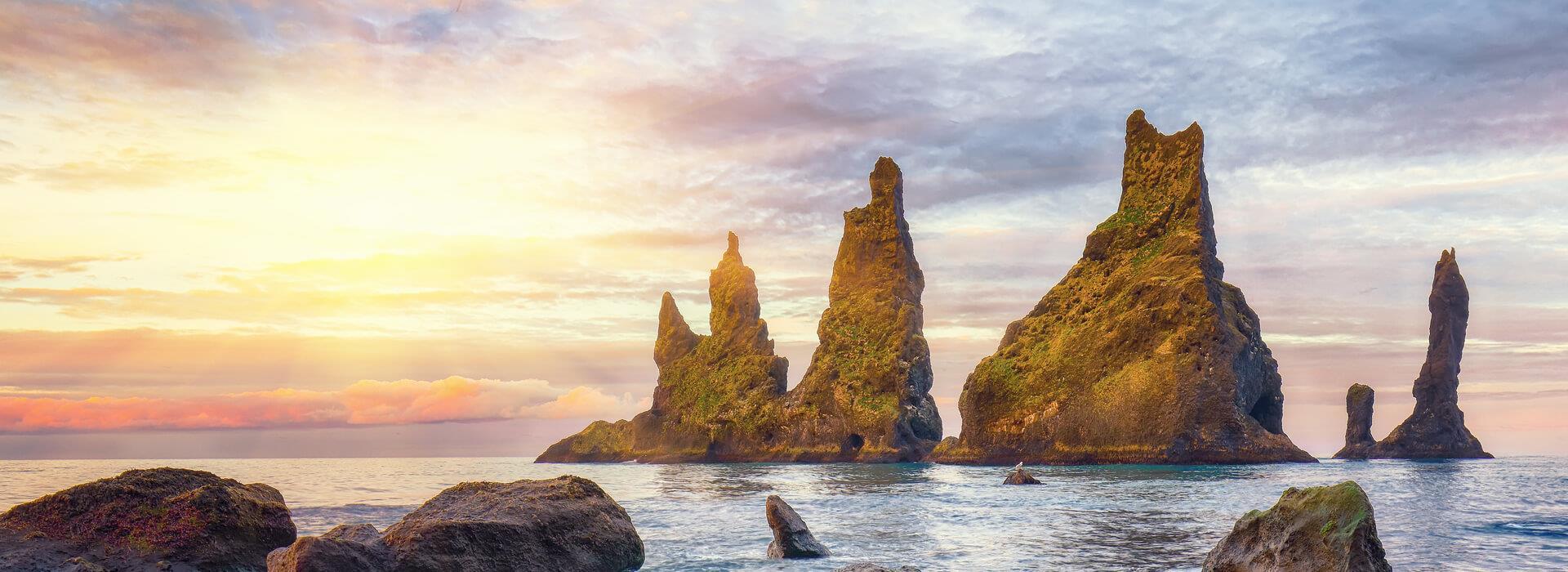 Iceland is famously known for its volcanoes - some of the world's most active ones are here - this geological activity is responsible for Iceland's most dramatic features. Much of its terrain consists of plateaux, mountain peaks, and fertile lowlands, there are long, deep fjords and glaciers including Europe's largest, Vatnajökull. Waterfalls, geysers, volcanoes, black sand beaches, and steaming lava fields are in abundance.